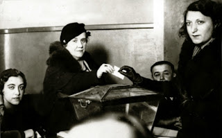 “¡Queda aprobado el artículo 34¡". dijo el señor Barnés, que presidía. "El resultado de la votación -consigna el Diario de Sesiones- es acogido con aplausos en unos lados de la Cámara y con protestas en otros. Un señor diputado: ¡Viva la República de las mujeres! Varios señores diputados pronuncian palabras que no se oyen claramente por el ruido que hay en el salón." ¡Viva la República de las mujeres!, grita en el Parlamento un diputado al aprobarse el sufragio universal. ¡Cuánto miedo inútil! Las mujeres van a seguir siendo tan buenas las pobrecitas, como dirá después socarronamente el conde de Romanones, que seguirán votando a los hombres...