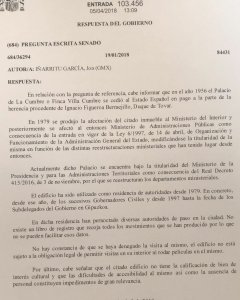 Del mismo modo, el gobierno niega que se hayan denegado visitas a este palacio, aunque también aclara que no existe “obligación legal” de permitirlas. Destaca además que tampoco tiene por qué autorizar la grabación de películas en su interior.